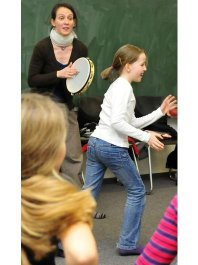 Mit einem Tamborin gab Nina Hänel im Workshop die Zeit vor, in der die Kinder Bewegungen ausführten. Foto: WAZ FotoPool